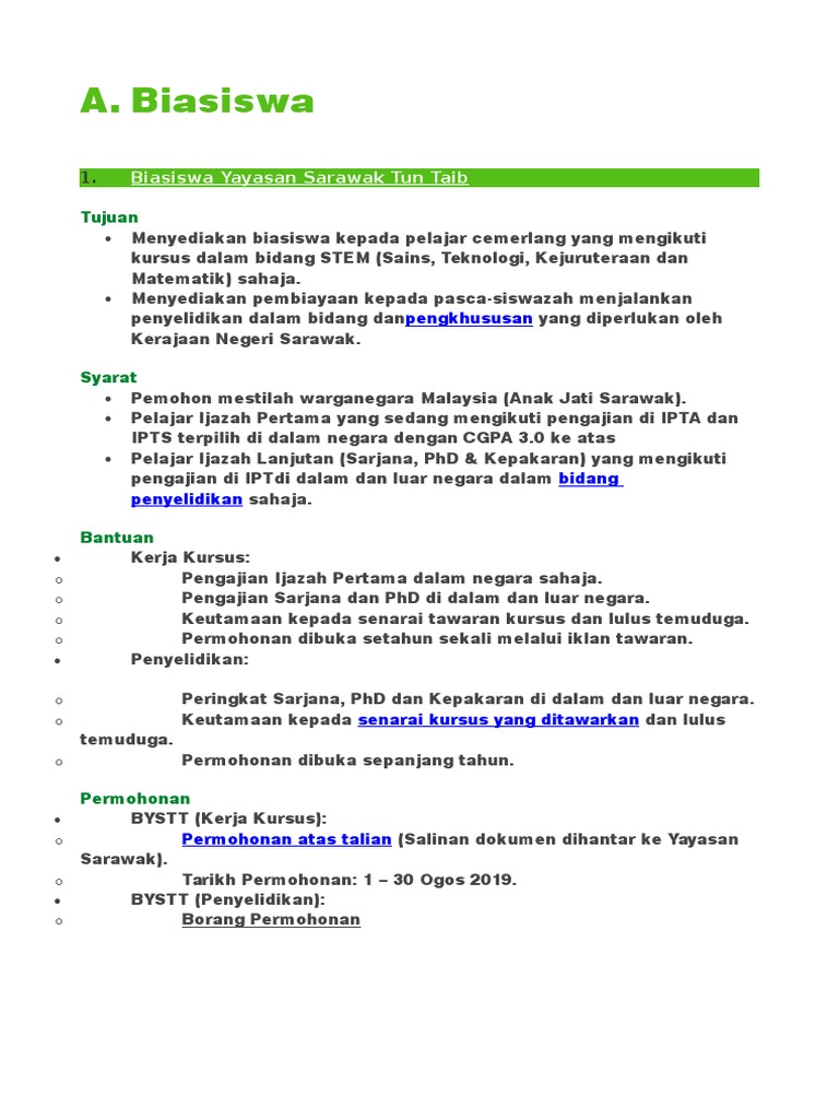 Yayasan sarawak and yayasan biasiswa sarawak tunku abdul rahman (ybstar) invite eligible sarawak career and training fair (scatfair) 2019. Open to applicants of malaysia. The sarawak foundation was established under the sarawak foundation ordinance as a statutory body on 27 may 1971 with the objective to grant scholarships or to provide financial assistance of any form to any person born in sarawak, in sarawak foundation tun taib scholarship (bystt). Pemohon diminta untuk merujuk sumber rasmi daripada laman web & facebook yayasan sarawak sahaja untuk maklumat yang tepat dan terkini. Sarawak energy scholarship programme (2021 intake).