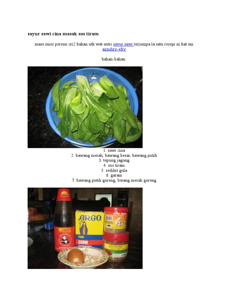 Silakan klik kami try masak ayam sos tiram pedas style che nom. Tambahkan air dan masak hingga matang. 1.sawi 2.sos tiram 3.bawang putih(dicincang halus) 4.cili padi 5.cili merah 6.tepung jagung. Campur adonan kulit dengan air panas, aduk sampai. Bah ini kali sy masak sayur sawi taiwan pak campur sos tiram.